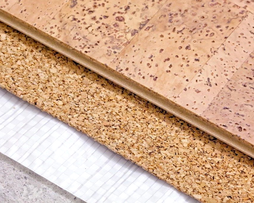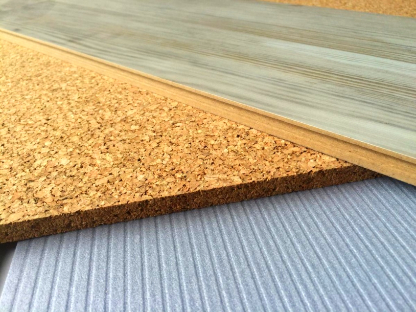 Rubber-cork backing. It is a flexible combination of crushed cork and synthetic rubber. Thanks to this, the material is indispensable in buildings with high humidity levels. In addition, this type of substrate has excellent heat and sound insulation characteristics. This material is suitable for use in the "warm floor" system.