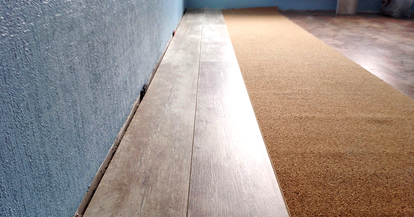 The cork backing is easily damaged, so the installation should be done according to the following scheme: first, place a backing sheet, which is covered with several rows of laminate, then install the next cork sheet, and so on. It is better to carry out installation work not from the screed, but from the already laid floor covering.