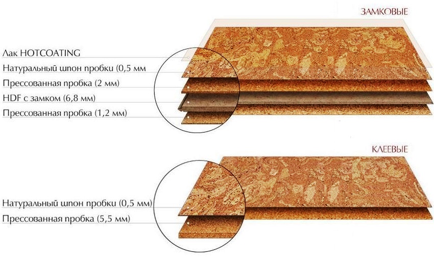The top layer is made of cork or other materials such as veneer or PVC. The scope of application of the floors, as well as their service life, depends on the properties and characteristics of the top coating.