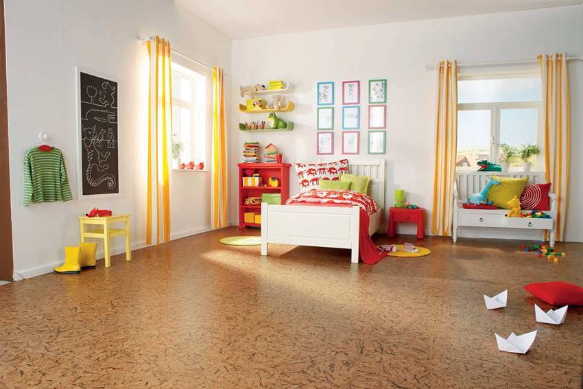 The advantages of cork as a finishing material are obvious. With proper care, the coating will retain its attractiveness for a long time. A wide range of colors and the ability to apply prints allow you to create a unique room design.And provided that all technology requirements are met, cork floors can be laid on your own and you can save a lot of money on this. Installation of the adhesive coating is more complicated in execution. But this type of floor is perfectly combined with parquet and laminate.