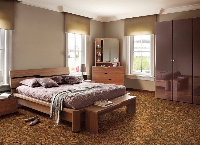 The use of this coating in the interior can be varied. In the photo, cork floors look prestigious and original, especially in the living room, bedroom and study. It is allowed to use in the children's room, but subject to careful treatment. The coating can be made in natural colors (natural) or painted in any shade of the palette.