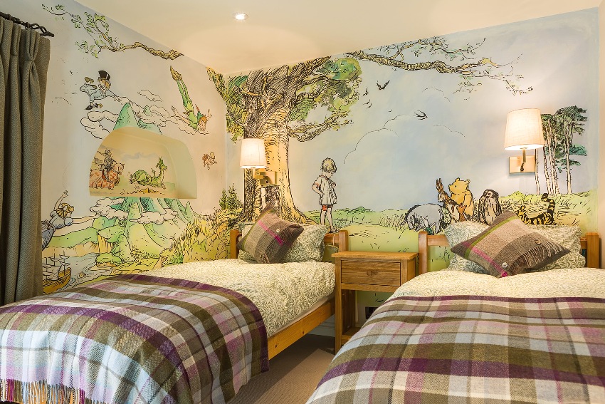 - Cartoon version. Favorite cartoon characters will brightly decorate the room. Zoning the territory into boys and girls with the help of characters from different paintings or the selection of one common design that both children will agree to.
