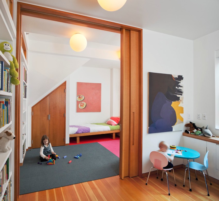 - having a standard-sized apartment, it is necessary to allocate a larger room for a nursery for two children of different sexes. This will make it possible to delimit the space for study, play and sleep for each child;