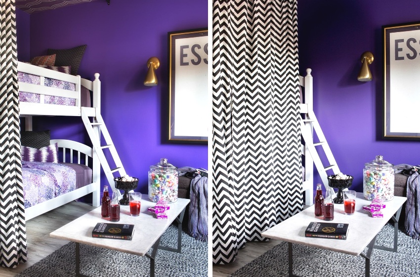 - special attention is paid to accessories. All kinds of chandeliers, bedside lamps, curtains, lambrequins, sports corners, etc. will add zest to the design of a children's room for a boy and a girl;