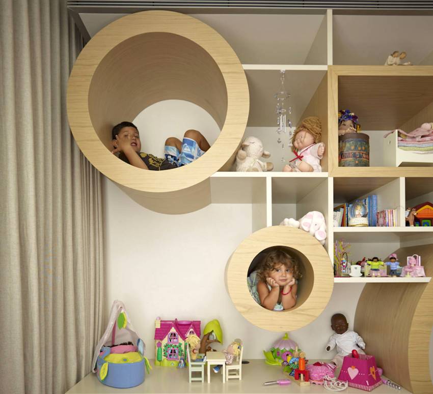 This can be a device with drawers or shelves with beautifully designed boxes. This wooden shelf is a vivid example of classic minimalism. And creative parents, creating a children's room with their own hands, can turn it into a dollhouse, a sweeping tree with shelves in the form of branches.