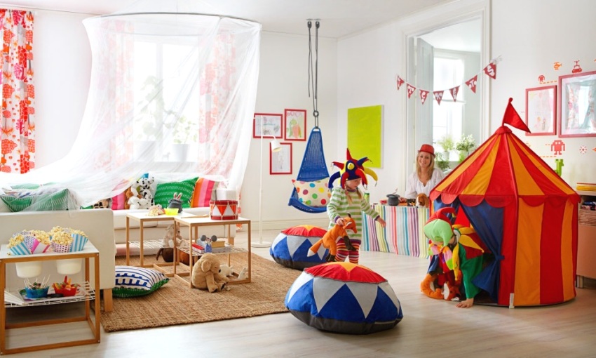 An important parameter is the compactness of the furniture. Thinking through the most necessary elements of the environment, we save space for games, creativity and spending time together. Cluttering a room can "deprive" it of oxygen. Therefore, you need to carefully select the structural elements of the situation, setting the goal - compactness and spaciousness.