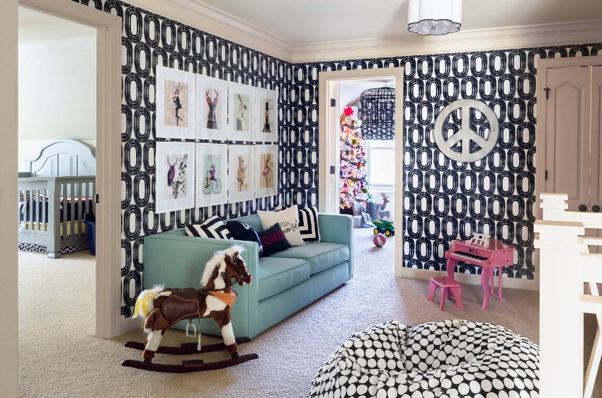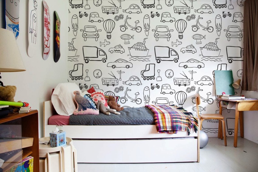 Considering the photos of children's designs, you can see that wallpapers with a variety of patterns and images are often used. The most environmentally friendly option is paper products, but their instability to damage is considered a significant disadvantage, which is especially important when decorating a children's room. Since the wallpaper has a low price, it can be changed frequently if desired.