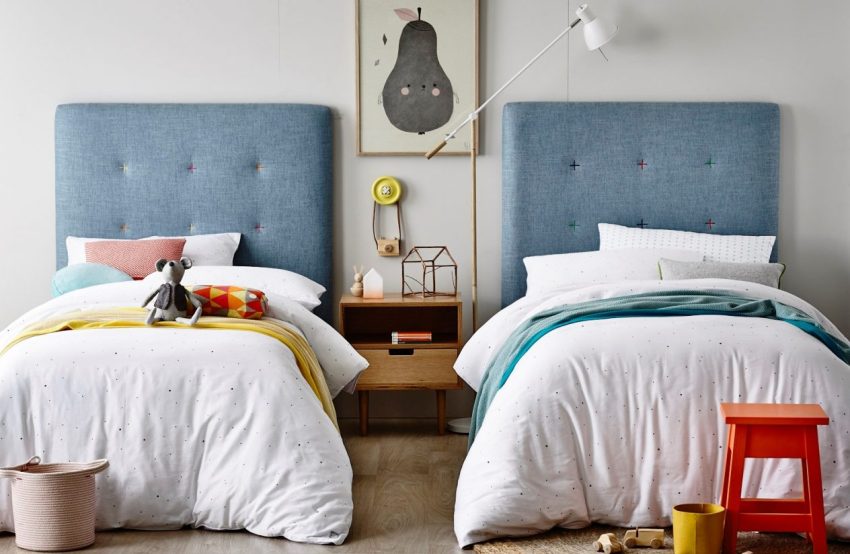 Beds installed in parallel and separated only by a bedside table or a small chest of drawers will be an excellent option for a small room