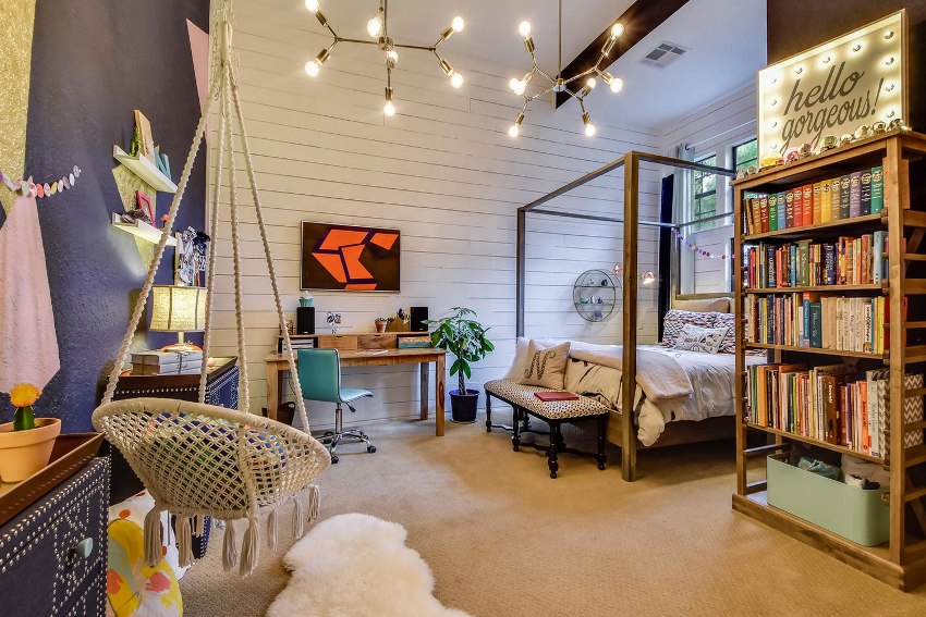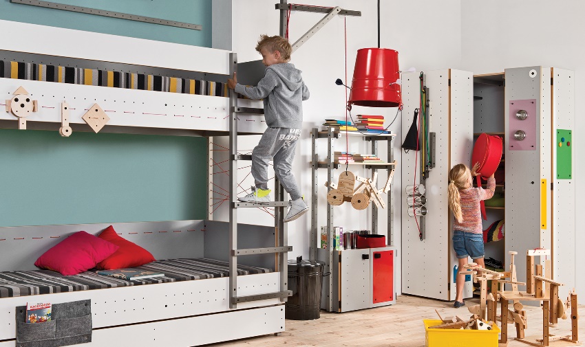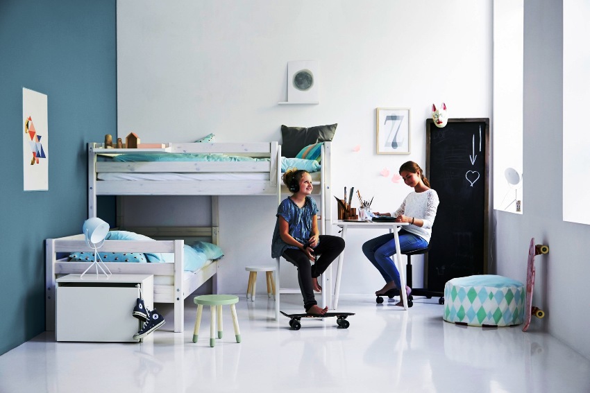 A more difficult option is to equip a room for two teenagers of different sexes. In this case, you should consider a way to divide the room using an original bed with sleeping places located not only on different sides of the bed, but also at different levels.