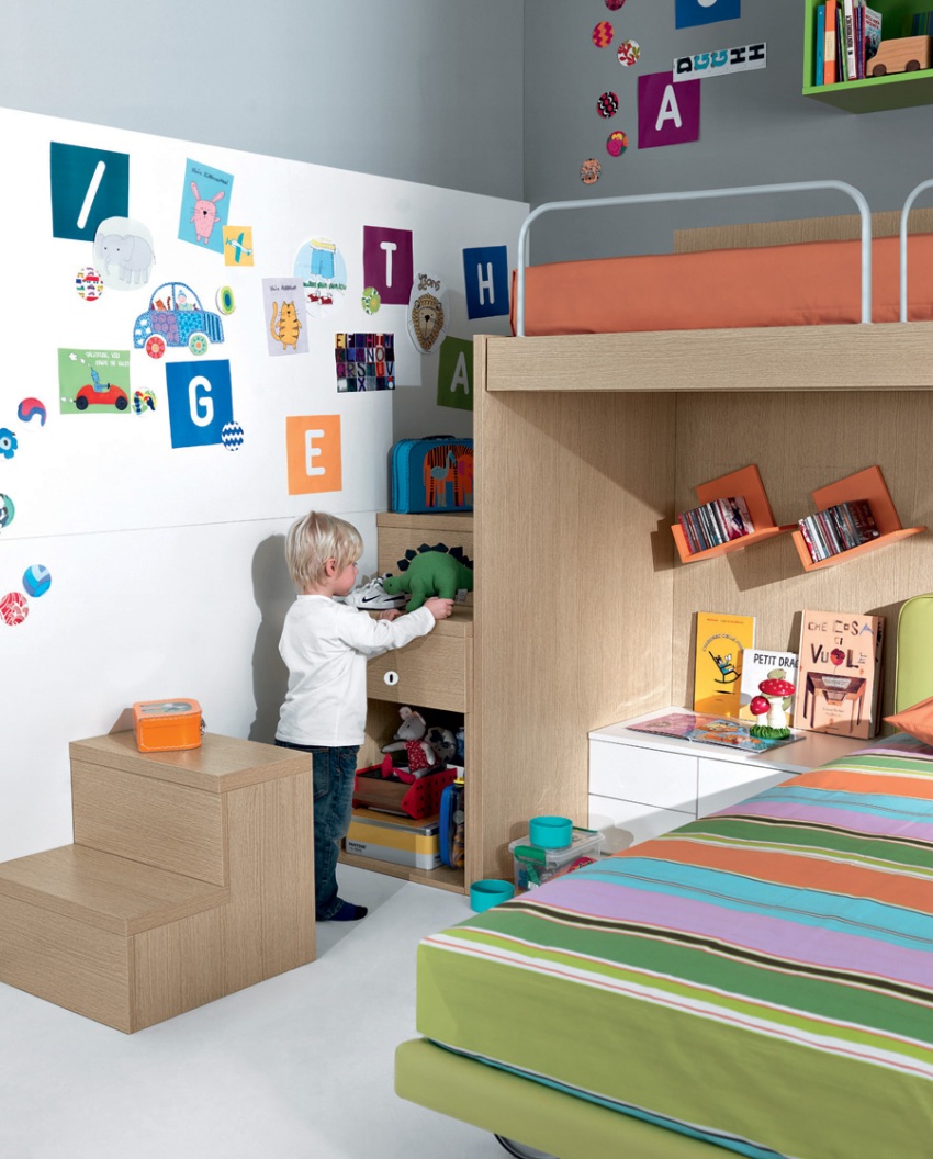 - By applying color to the decoration. The surfaces are finished in a neutral color that is suitable for children of both genders, but each zone has its own bright details.