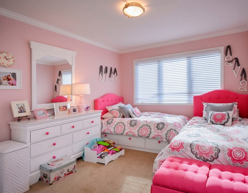 - pink. The most popular color for organizing baby girl designs. A large number of shades and options - from pastel to bright - will help create a seamless interior of the room;