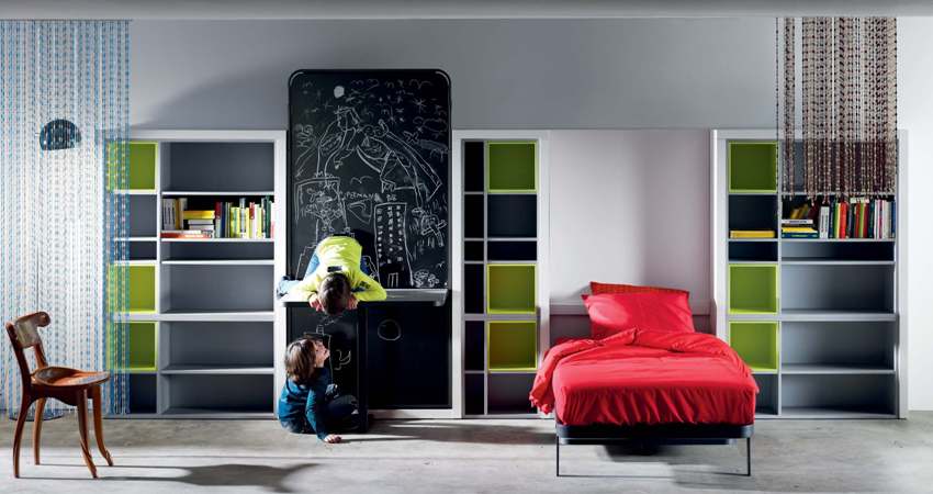 In many photos of children's room design projects, you can see how an individual and unique atmosphere is created with the help of photo wallpapers, but it is important that the child chooses the drawing on his own. When using wallpaper with a 3D effect, the volume of a small room visually expands. You can also often find a small graphite wall in the photo of children's room designs, which plays the role of an easel for the owner of the room.