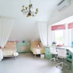 Adequate and bright lighting is required in the children's room. In this room, there should be no sharp transitions from light to shadow, which are harmful to the eyes. It is important to understand that excessive brightness and a large number of shiny surfaces are also useless here. The light should be soft and diffused. If the room is intended for one child, then one ceiling chandelier can be installed in the center, which will evenly illuminate the entire room. In a situation when a nursery is being made for two boys, girls or children of different sexes, the room is zoned with the help of ceiling chandeliers. In this case, it is better to install two chandeliers that will turn on autonomously.