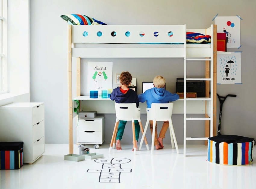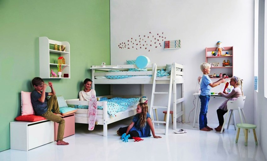 Before starting repair work in the nursery, you need to consider that here you will need to organize both the bedroom, and the playroom, and the area for doing homework. If you plan to create a design for a nursery for two children, then you need to think about separate places for sleeping, especially if a boy and a girl will live together.