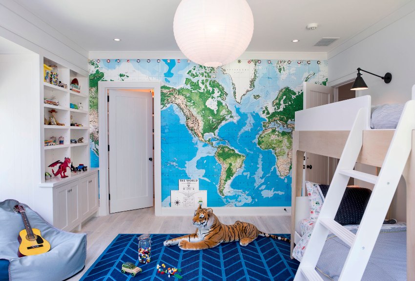 The boy's room is a room designed to realize his creative potential. Boys often need sophisticated lighting arrangements and unusual furnishings. Rooms that are decorated in the form of a pirate or space ship will look original. For this, it is important to choose the right wallpaper and accessories, for example, hang a real steering wheel or use a chest instead of a toy basket.