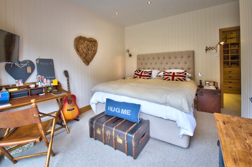 The bed can be bought in the form of a sailboat, a boat with a decorative steering wheel and anchor. You can hang a clock in the form of a lighthouse or a steering wheel on the wall. An interesting accessory will be a globe, a decorative treasure chest that can be used to store various little things.