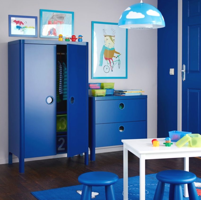 Particular attention in the nursery should be paid to a spacious closet for storing clothes and other things. It could be closet with sliding doors in the form of mirrors to further increase the space, or a design pattern that fits perfectly into the overall theme of the room. Be sure to look at the photo of the design of a small children's room, where functional wardrobes are used.