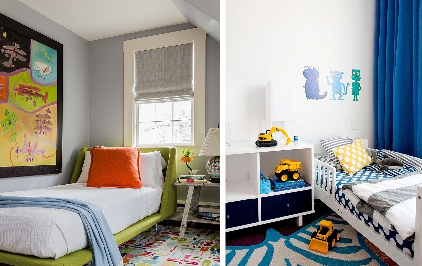 Bright bedspreads and decorative pillows made of high-quality material will help to give individuality to the sleeping place. With the help of such textiles, you can add contrasting notes to the overall design of a small children's room.