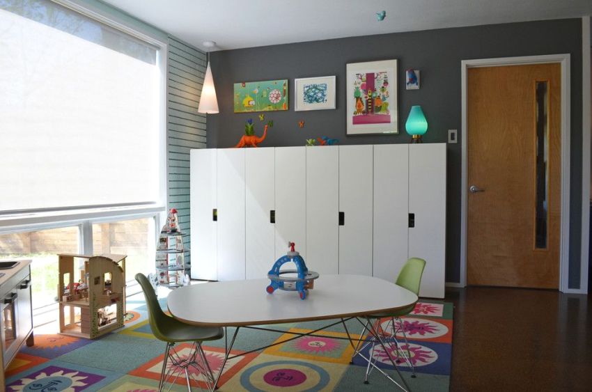 There is no need to separate the play and work areas in this room. Since for children of this age, drawing or the like is no different from playing.
