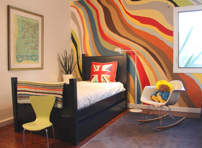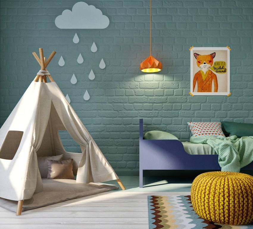 Indian style design... Many kids enjoy running and screaming around the apartment, painting their face and shooting arrows at targets. A good solution for a room of such a colorful design would be to install a small tepee. Children love to retire in small houses. Such a small world will allow a child to enjoy loneliness, reflect, calm down and focus.