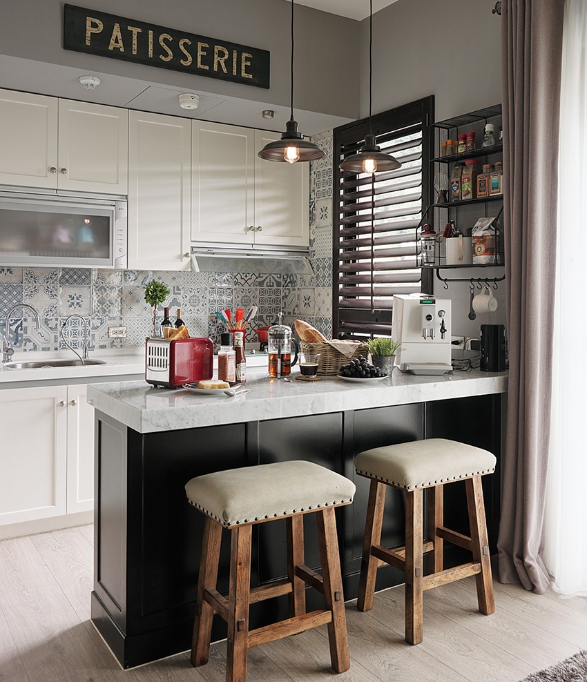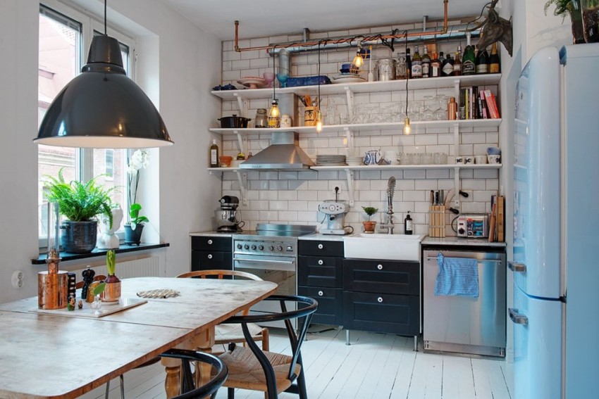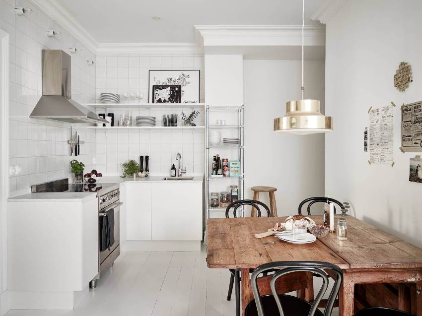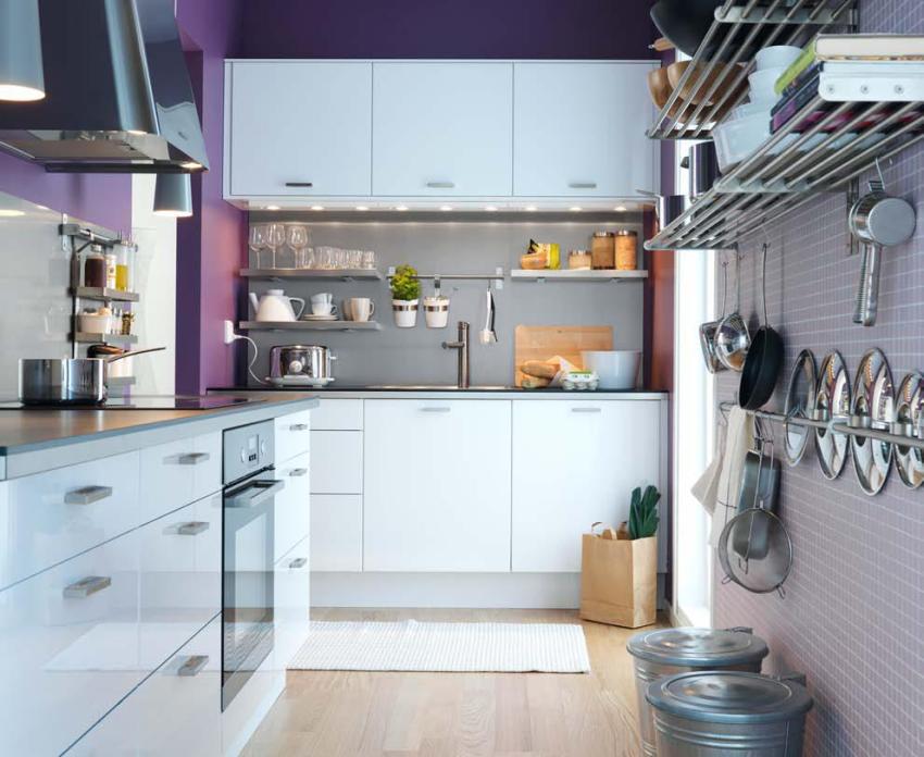 A small room must be used to the maximum. The efficiency of the kitchen depends on the rational distribution of the usable area. Most of it goes to kitchen furniture and storage devices, as well as cooking. However, even in such a small room, you can find a free, unexploited place. A niche in the area of the gas water heater or the space under the windowsill - all this can be used to equip small cabinets or shelves.