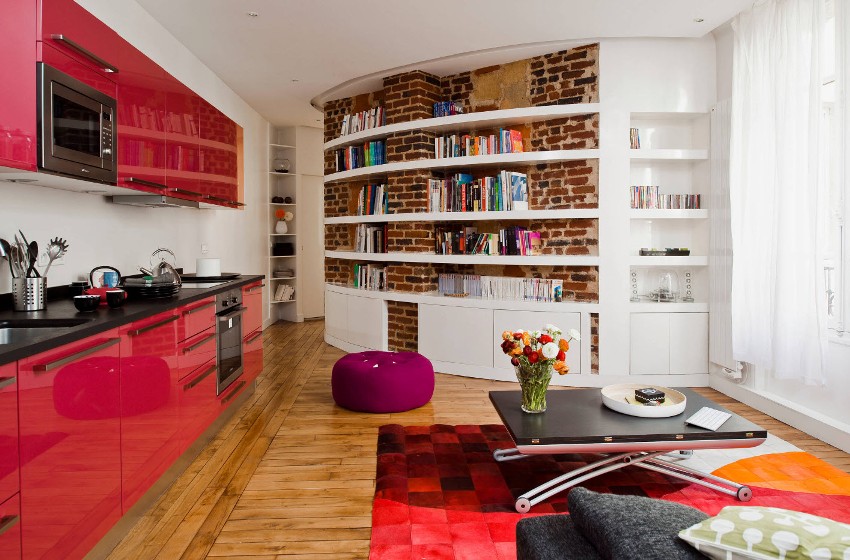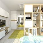 The optimal solution for a one-room apartment is built-in furniture that can be easily transformed and takes up less space