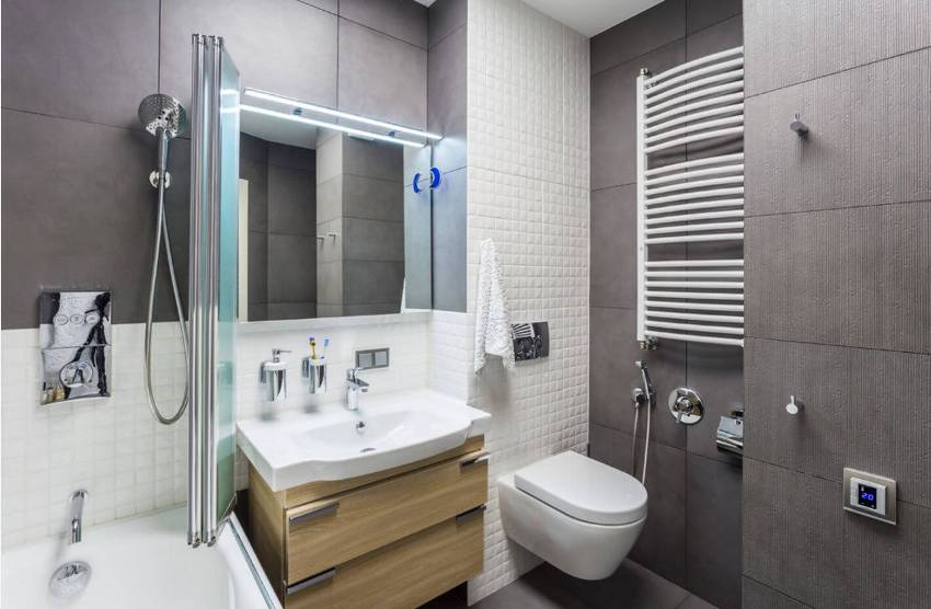 The design of the renovation of a one-room apartment, which includes a combined bathroom, most often involves the installation of compact plumbing. Experts recommend not to use too many details in the interior of the room. The bathroom, decorated in a minimalist style, looks modern and more spacious.