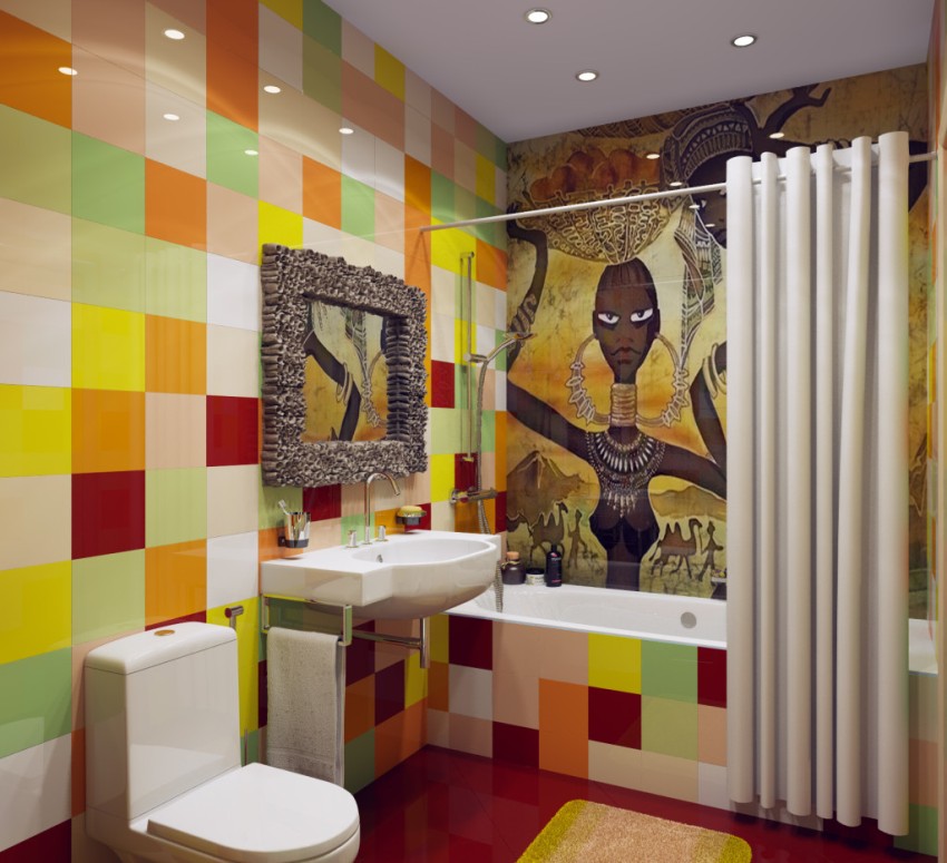 A bathroom in a small apartment is usually combined, so there should be nothing in it except a toilet bowl, a bathtub and a bedside table for hygiene supplies