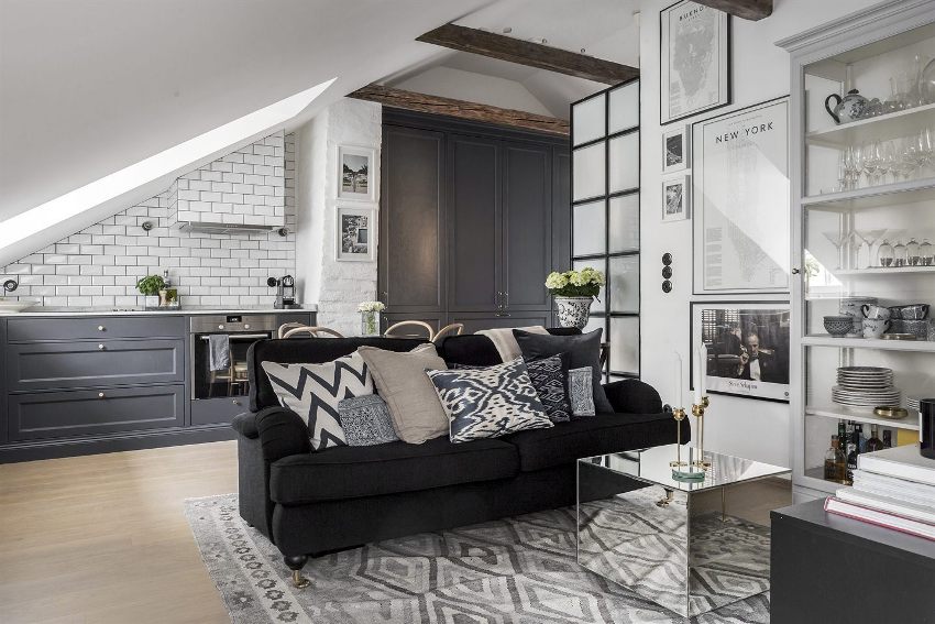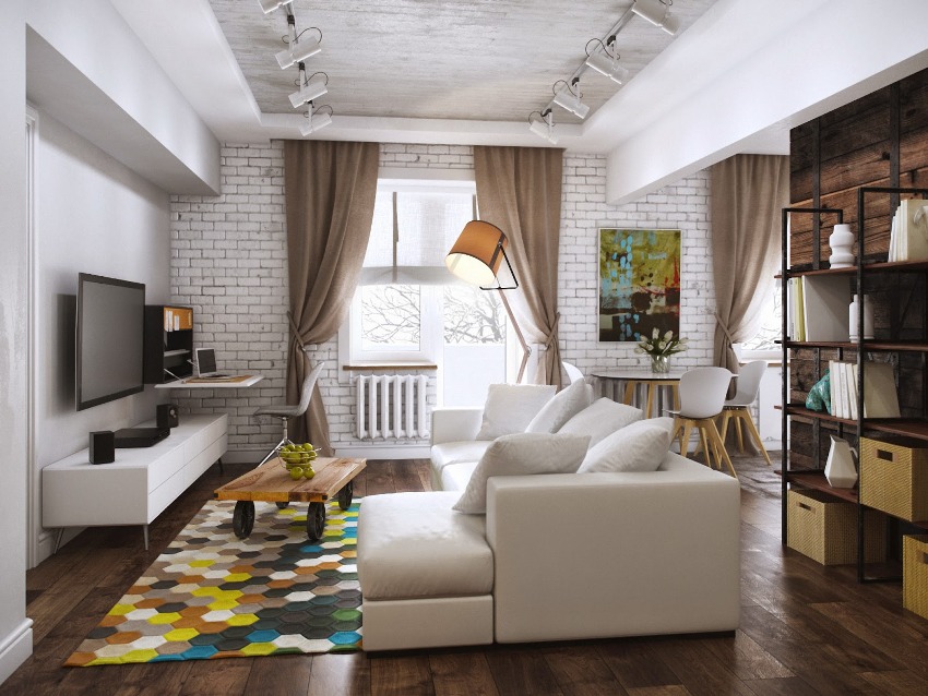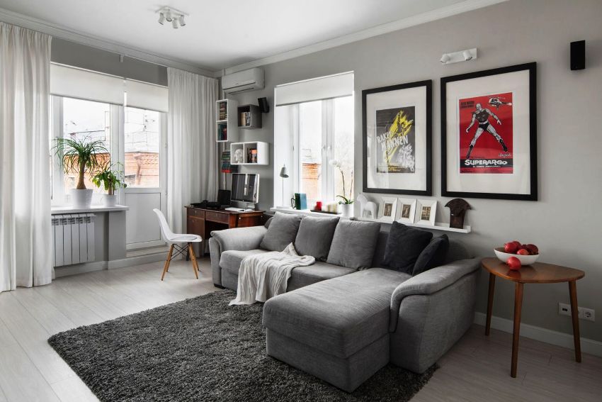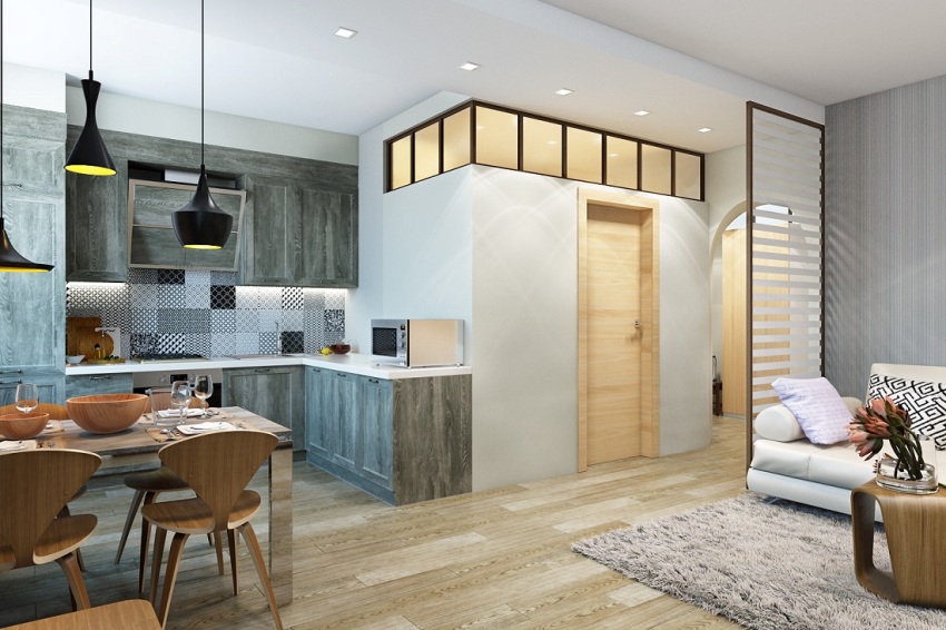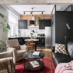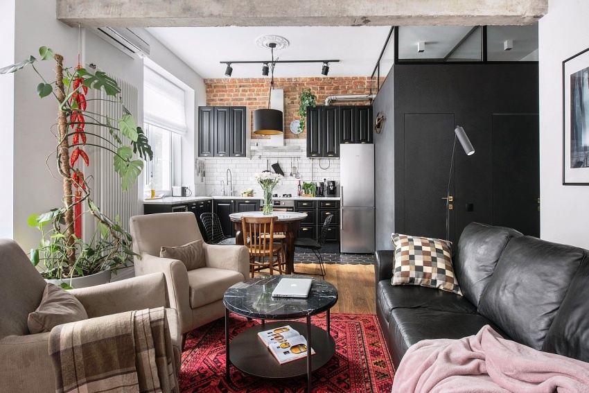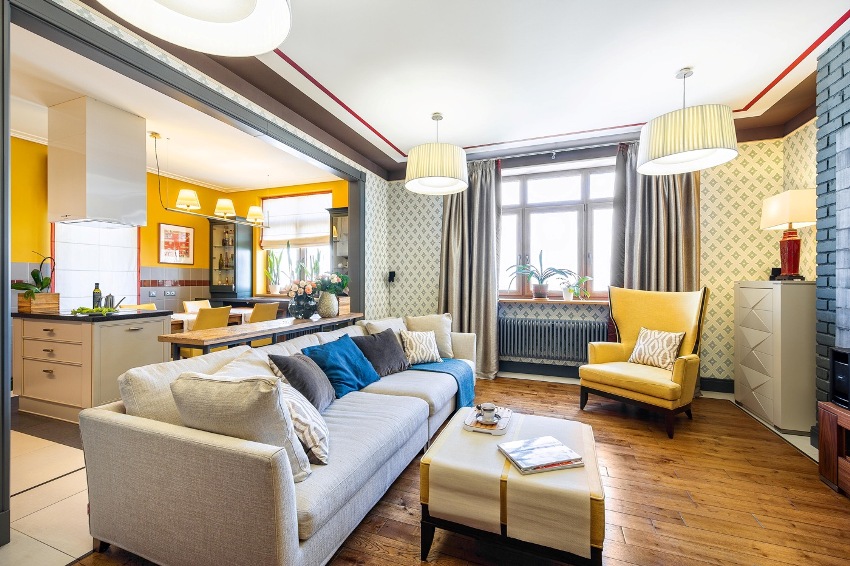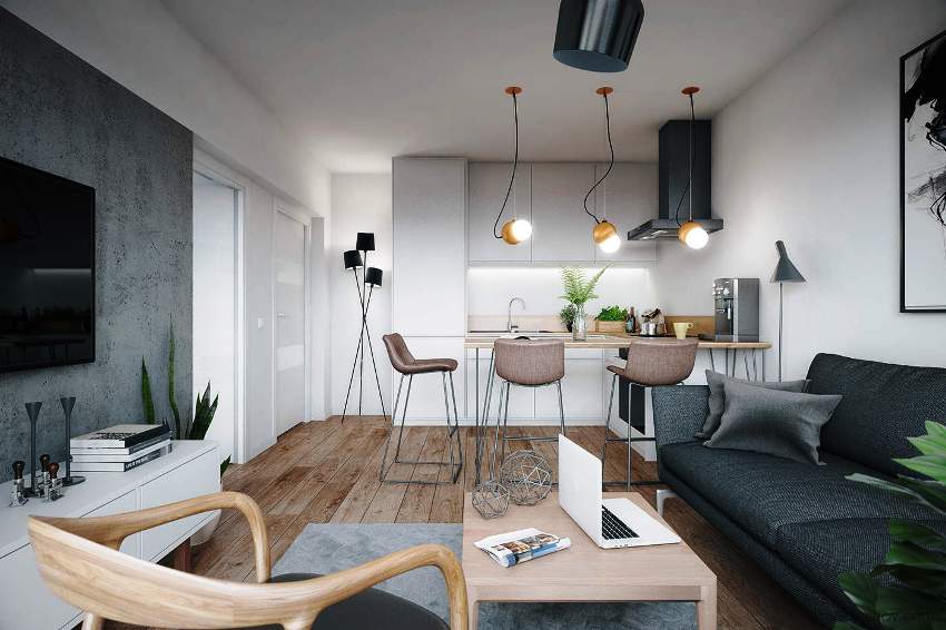 As a result of combining the living room and kitchen space, there are ample opportunities for transforming the design of a one-room apartment.