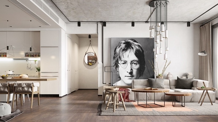 And also designers strongly recommend reducing the number of decorative elements in the floor area. Minimalism is the most suitable style for interior decoration of a one-room apartment. Photos of dwellings made in a similar concept will help you evaluate its advantages.