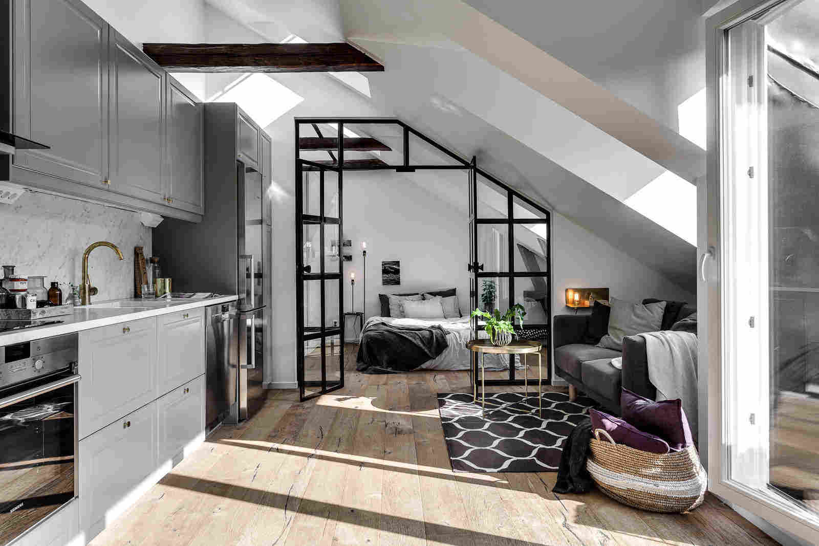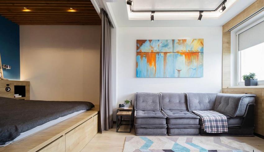 A one-room apartment needs to accommodate the functionality of modern housing with a sleeping place, a comfortable kitchen and a public area for receiving guests