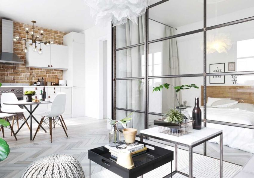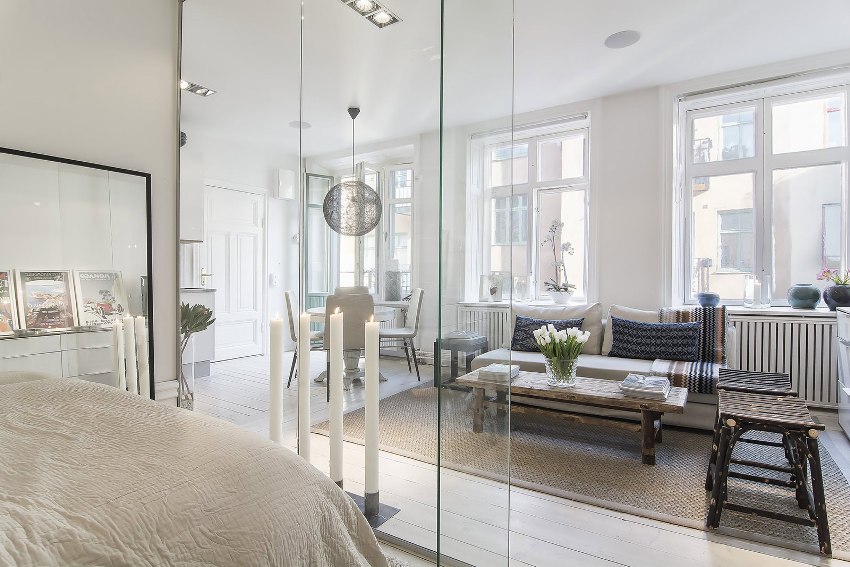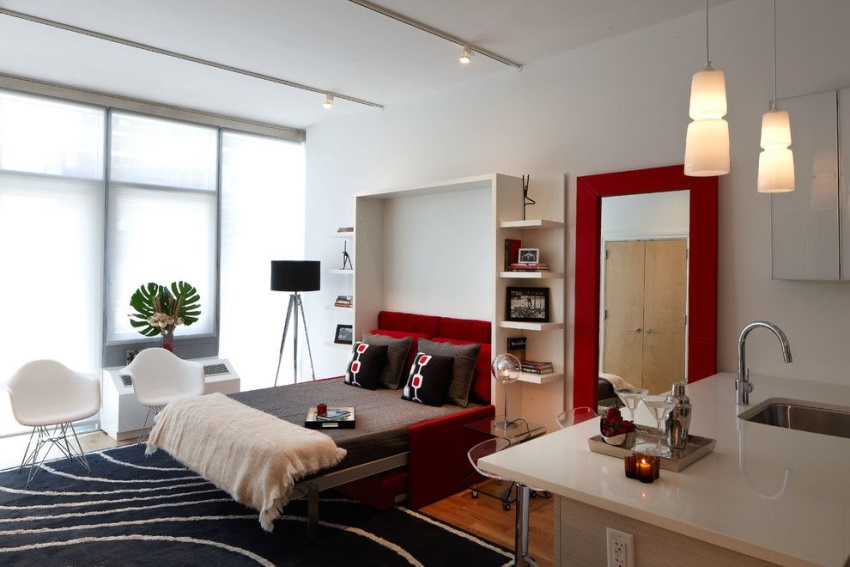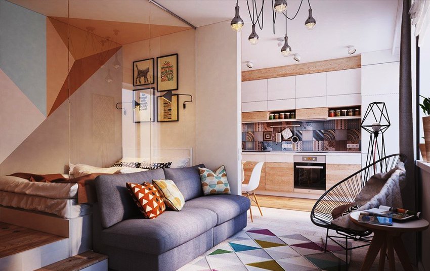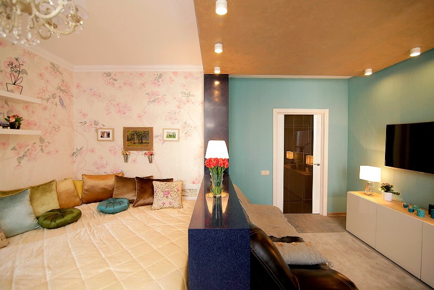 The main thing in a one-room apartment is the visual expansion of the existing space and its division into zones