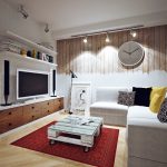 Also, don't forget about installing a TV. Of course, the most suitable option for odnushki are devices with liquid crystal and semiconductor (LED) monitors. It is recommended to mount such a device on swivel brackets. Acoustic elements can be positioned to the sides or near the ceiling.