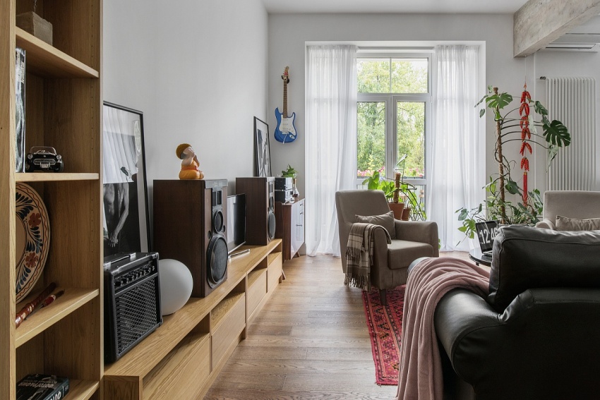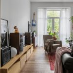 With the modest dimensions of the apartment, it is the abundance of light that makes the housing more comfortable and visually wide