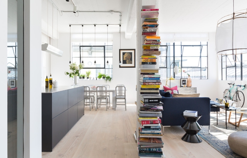 Lighting is also important. With the help of electric lighting, you can zoning an apartment, highlight a separate segment, etc. To divide a small dwelling into plots, other design techniques are also used: flooring, furniture or a podium.