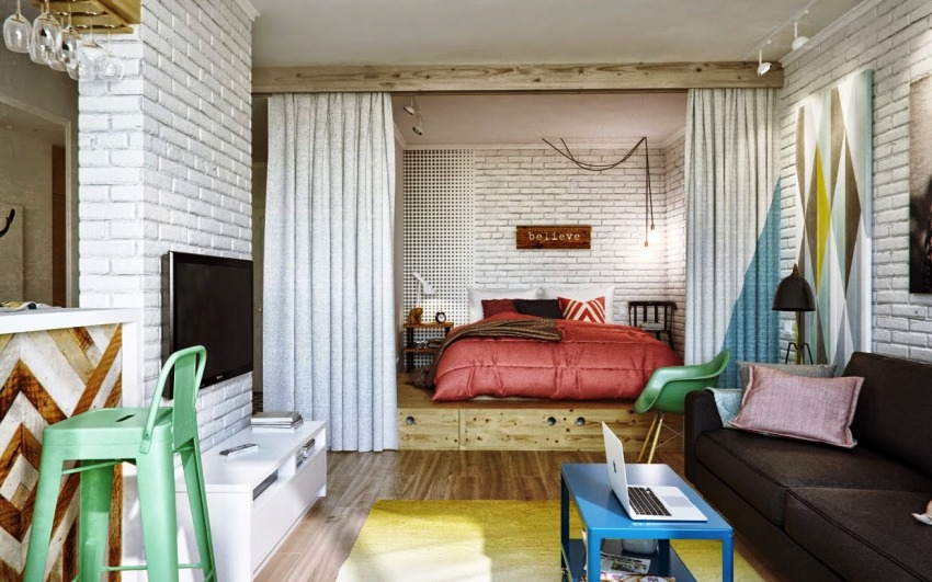 In order to stylishly equip the square meters of a one-room apartment, you must first draw up a design project, think over all the details