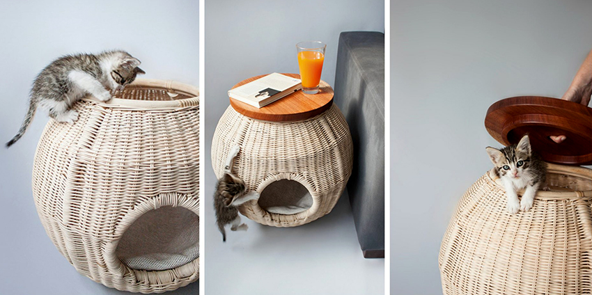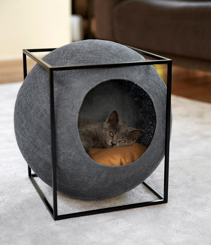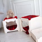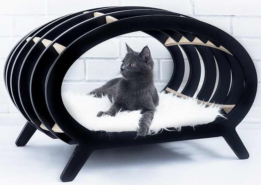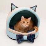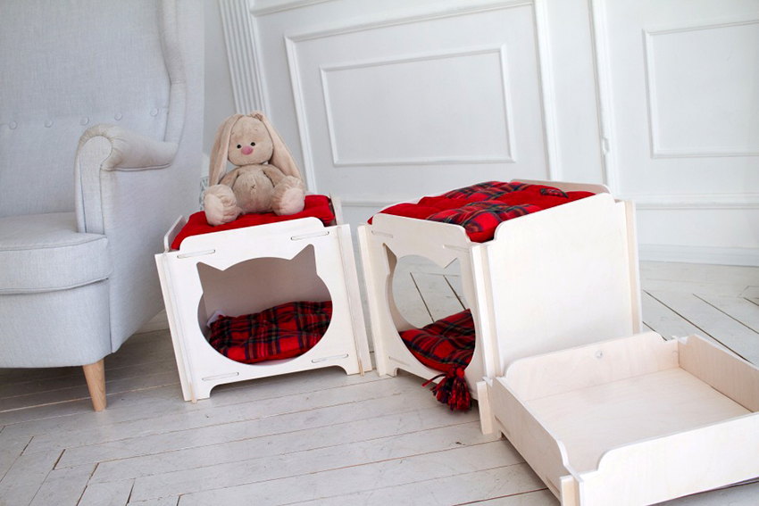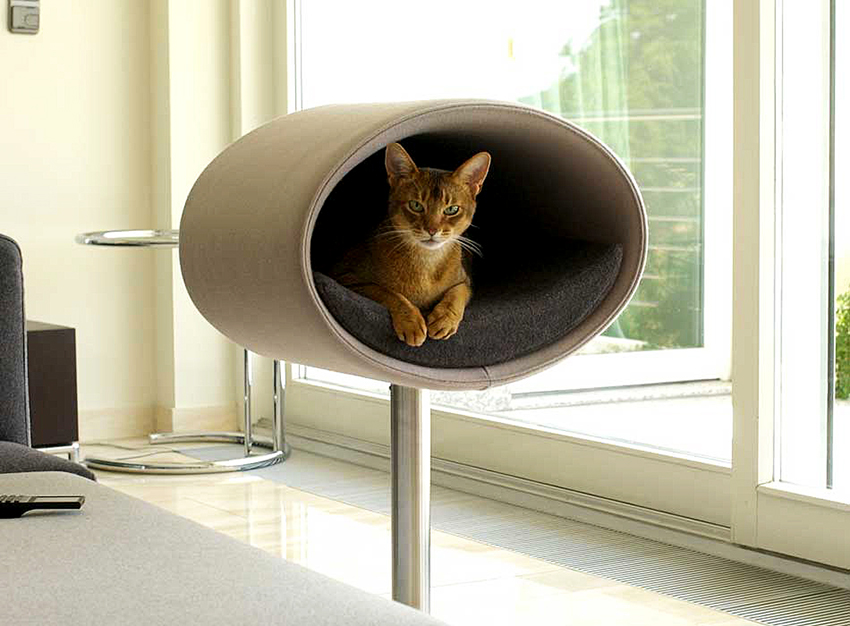 Some craftsmen prefer to decorate the interior with mini-furniture for cats, which looks like toy sofas, beds, ottomans or chairs. The only thing that distinguishes them is the increased size of the latter.Cat lovers often install pet beds in their room, made in the same style as the owner's bed, or even decorated with a canopy. In this case, it is important to sew a removable durable cover that can be easily tidied up.