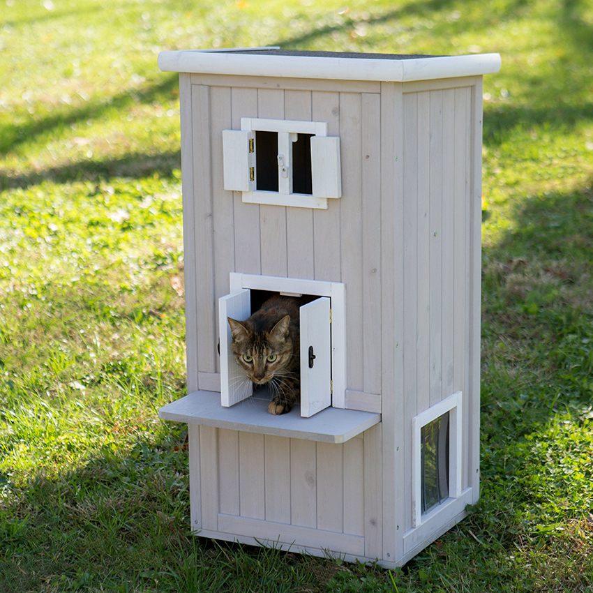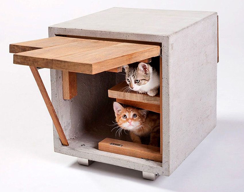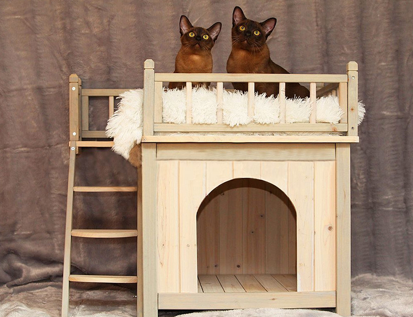 When a cat often acquires offspring, it is better to give preference to multilevel designs. So, the mother will be able to use the upper floors as a viewing platform, and the lower house for kittens will become a reliable cover. Later, from a height, a mother-cat will be able to calmly observe the games of the cubs and, in case of danger, attack a potential enemy. It is also better if the house of the mother cat with the cubs is not located in a large open space, where they will constantly feel discomfort.
