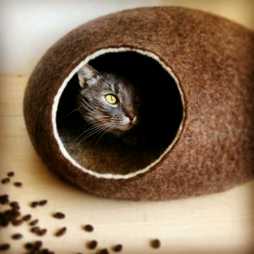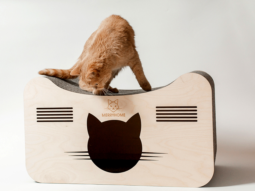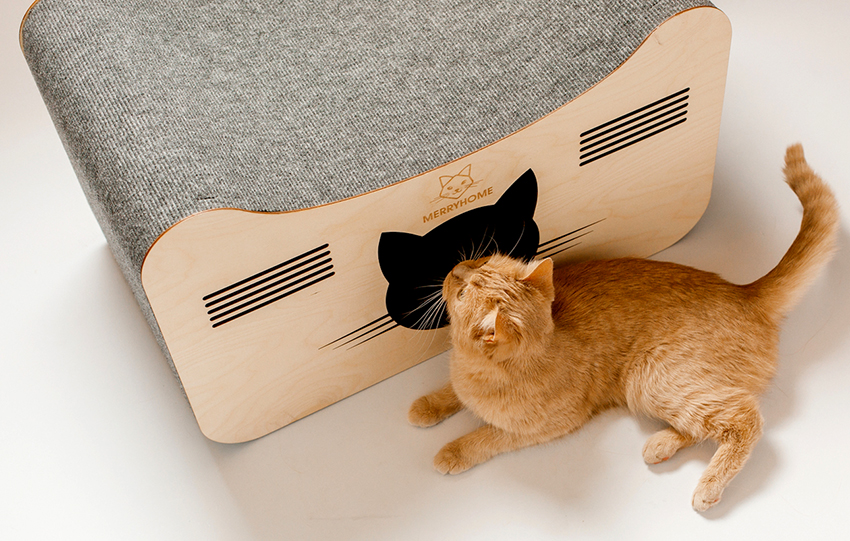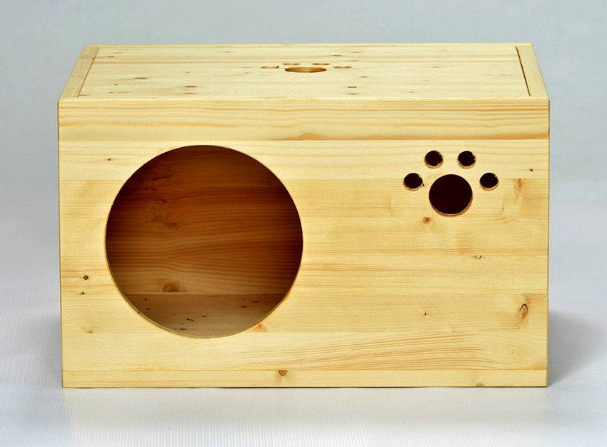 - You need to choose natural materials for decoration. Most often, playhouses for cats are made of wood, cardboard, felt or wool. Artificial materials such as plastics electrify the coat excessively, causing some discomfort to the animal.