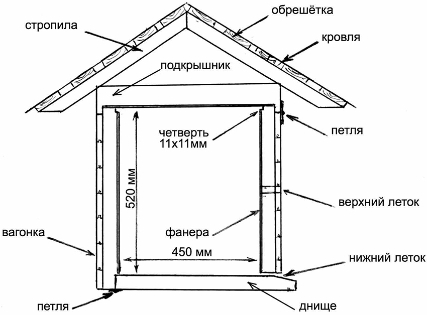 - Its parameters must correspond to the size of the pet. It is necessary that the animal freely pass into the hole and at the same time be able to comfortably fit inside the structure. But do not make the shelter too large.