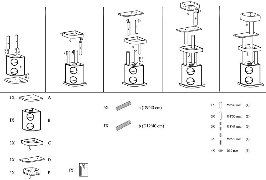 To securely fasten the vertical elements in the wooden posts, you will need to drill small holes, thanks to which the element will be screwed to the shelves. Among the useful tips on how to make a cozy space for a cat with your own hands, the following can be distinguished: