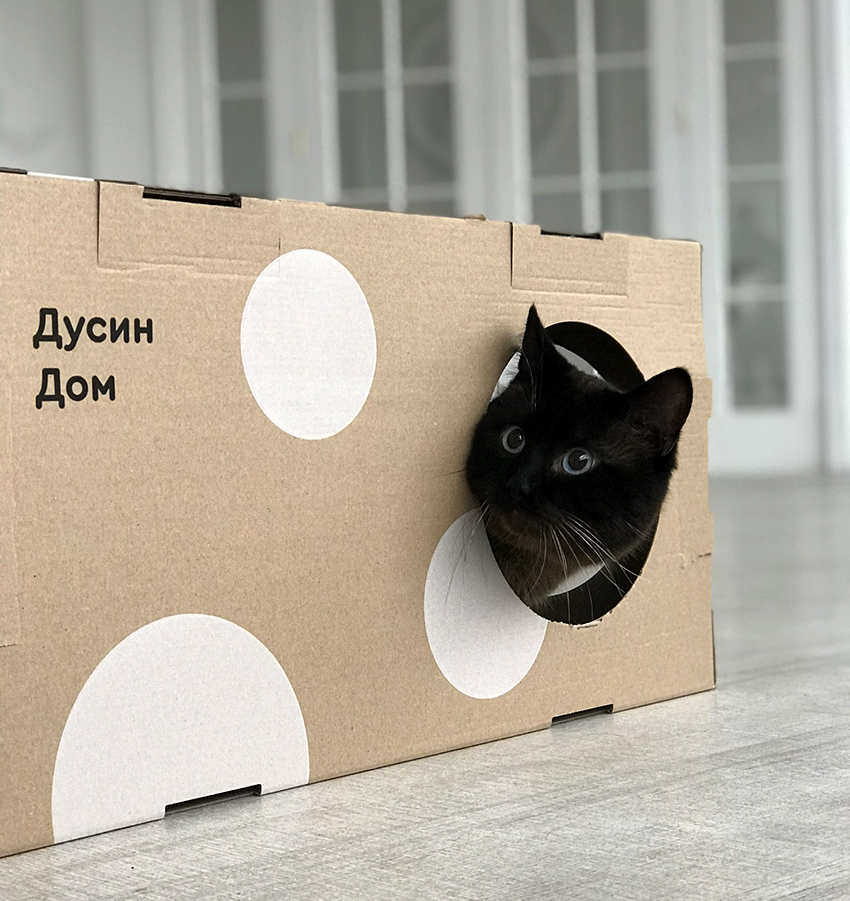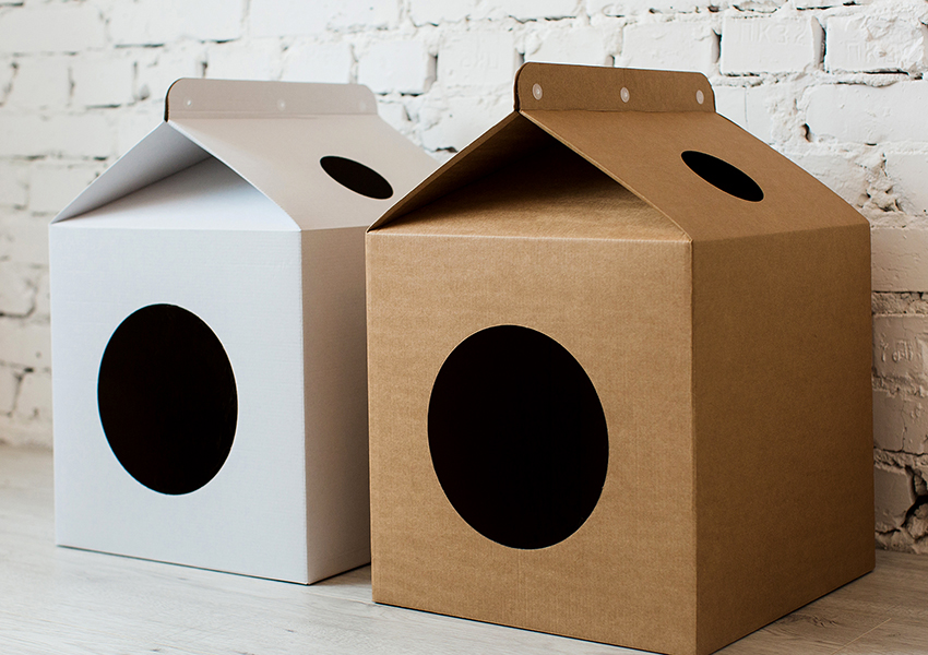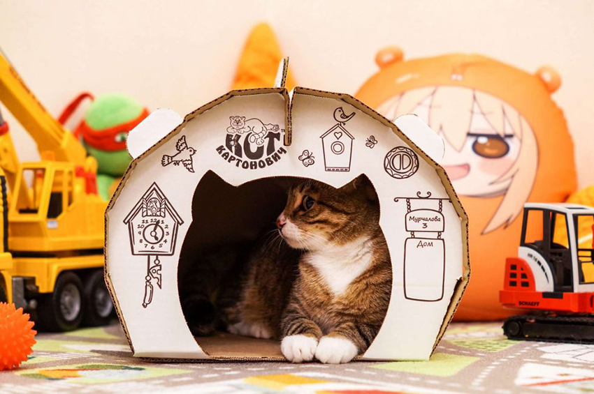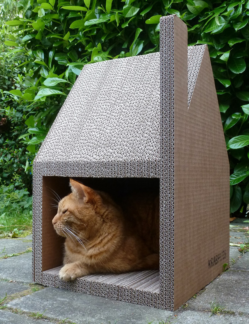 The important advantages of cardboard houses for cats are the low cost of construction, high production speed, and the fact that cardboard is a material that retains heat well. A significant disadvantage of the products is a very short service life, and the more active the animal is, the shorter it is.