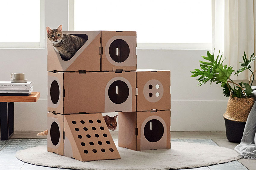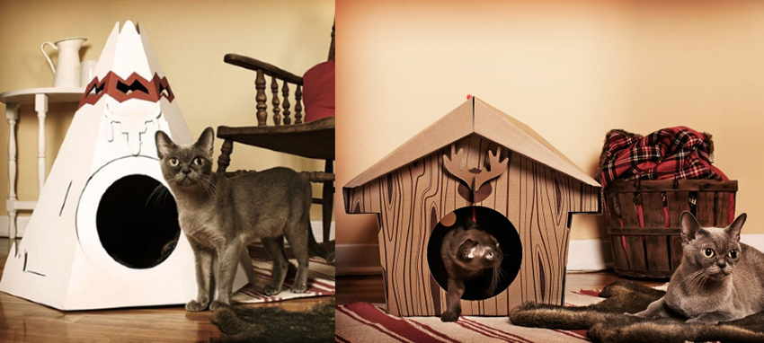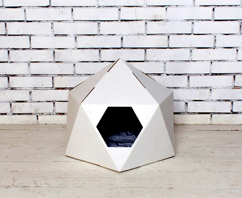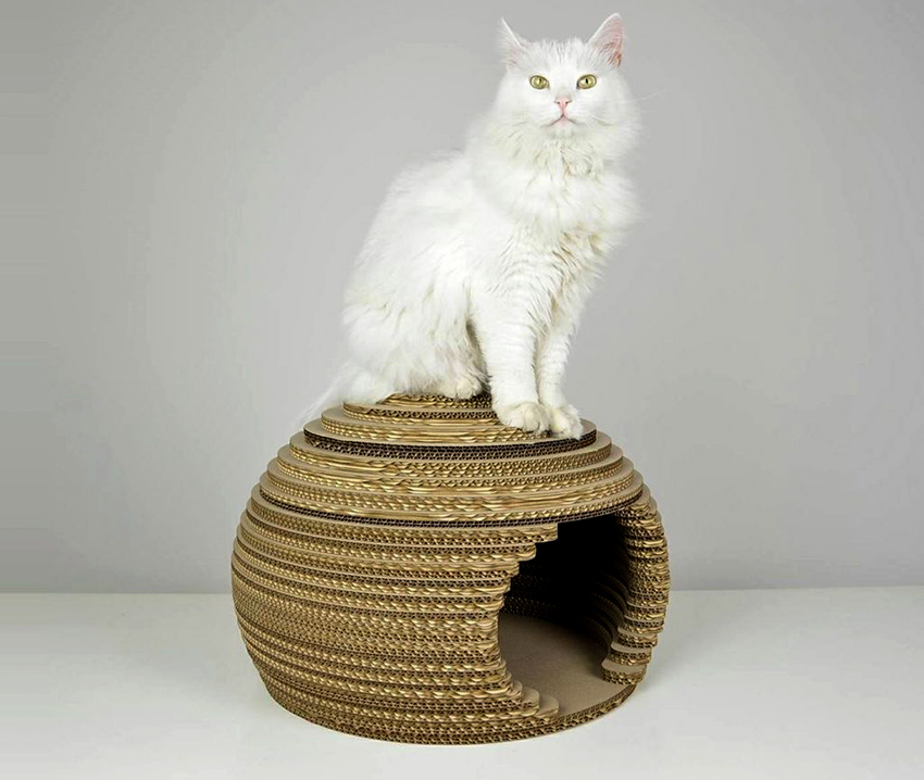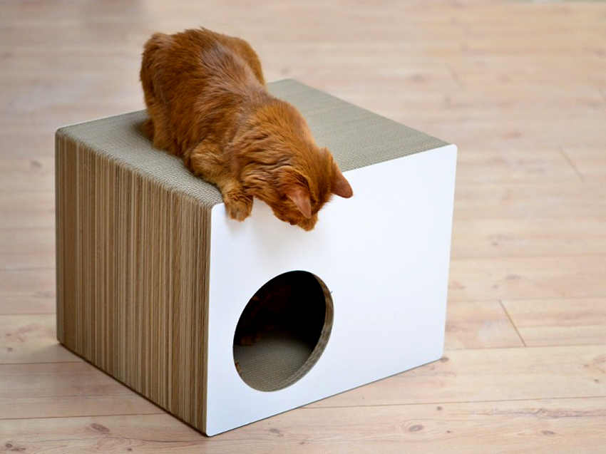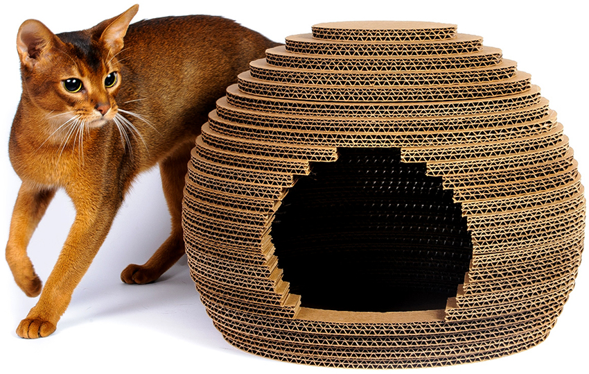 Do-it-yourself cat houses made of cardboard look very interesting and beautiful. This does not require the purchase of expensive materials or fastening systems. Due to the pliability of the material, it is easy to give the structure the desired appearance, but most often, preference is given to such forms as:
