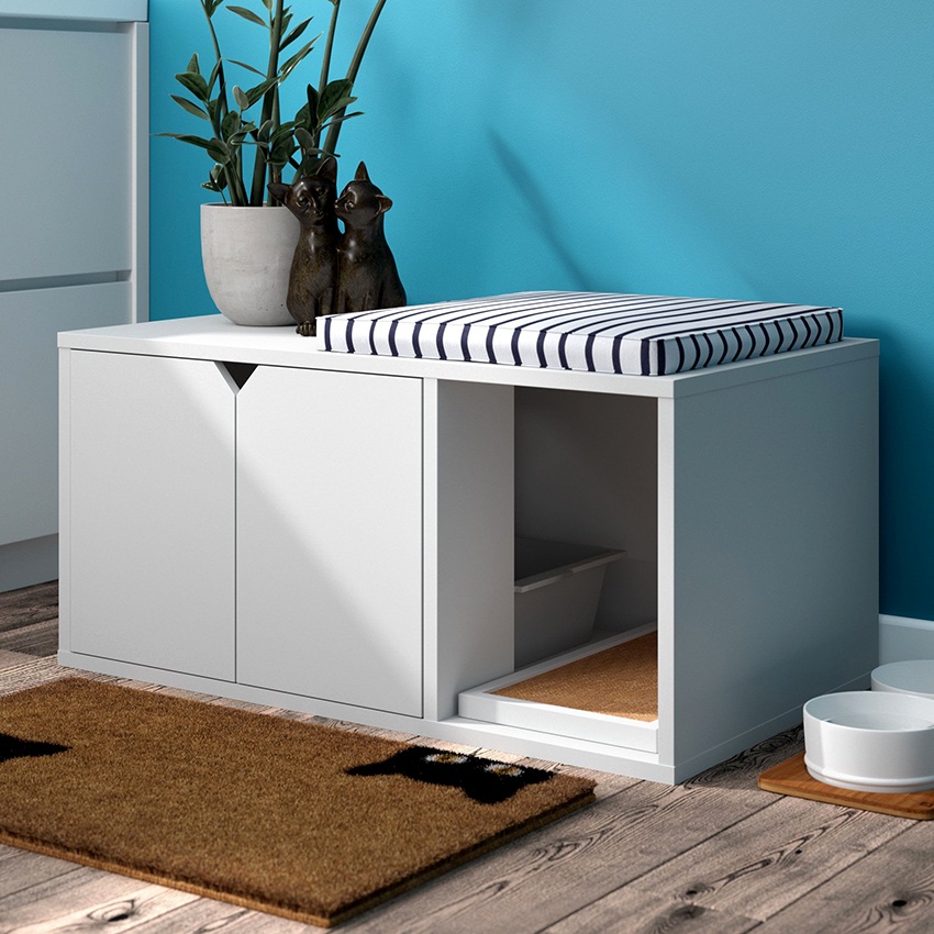 A closed cat litter box is a small structure with a roof. In such a house, the result of the animal's vital activity is hidden from others, and there will be no scattered filler around the toilet. And the pet itself is easier to cope with its needs if it is hidden from prying eyes. Aesthetically, the design looks presentable and can have various shapes and designs, which depends on the mood of the owner.