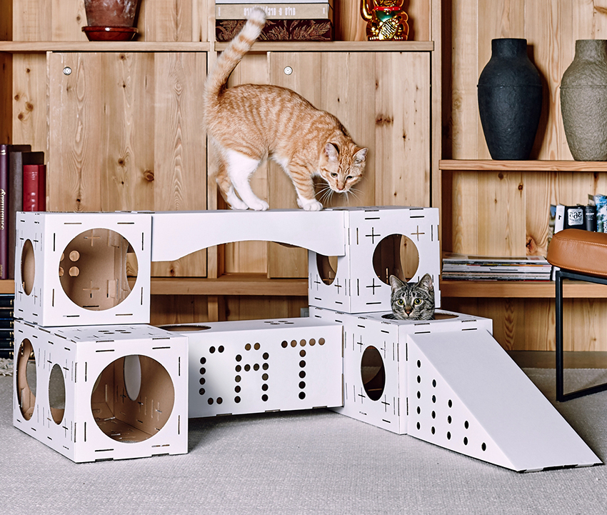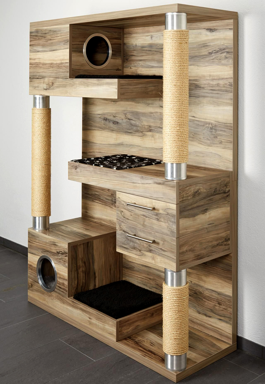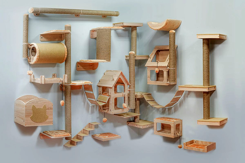 If the size of an apartment or house allows, as well as in the case of the playful nature of the animal and if you wish to create a complex structure on your own, you can think over the manufacture of a whole game complex equipped with shelves, stairs, labyrinths, scratching posts and other accessories interesting for the animal. In such a house, the cat will be able to play even in the absence of the owner, it may stop climbing on the closets and throwing out clothes.