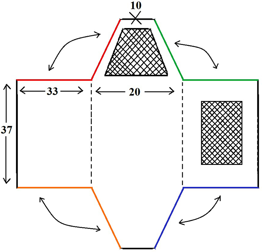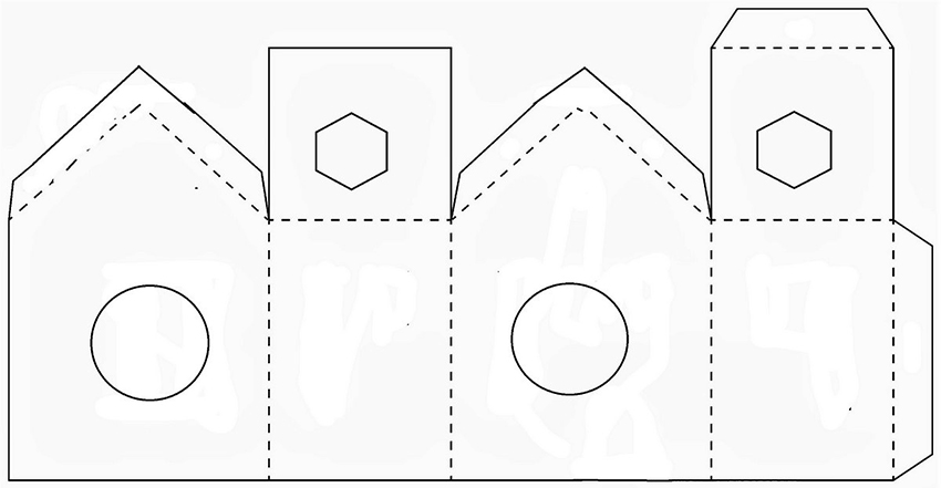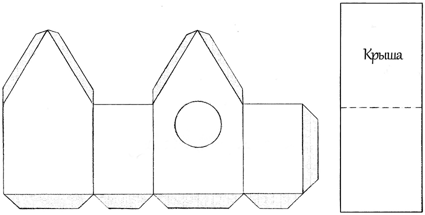 - To complete the roof, triangles are drawn and cut out on two small sashes of the upper box, located opposite each other, and so that the remaining parts can be bent forward and form a roof.