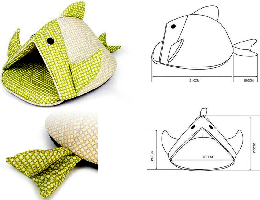 Some people use a wire frame to shape the bed. The filler case is sewn from two pieces of fabric, and it is not at all necessary to use patterns. You can randomly sew two pieces of fabric from the wrong side, leaving a small hole so that it is convenient to stuff the filler, and then carefully close it up.