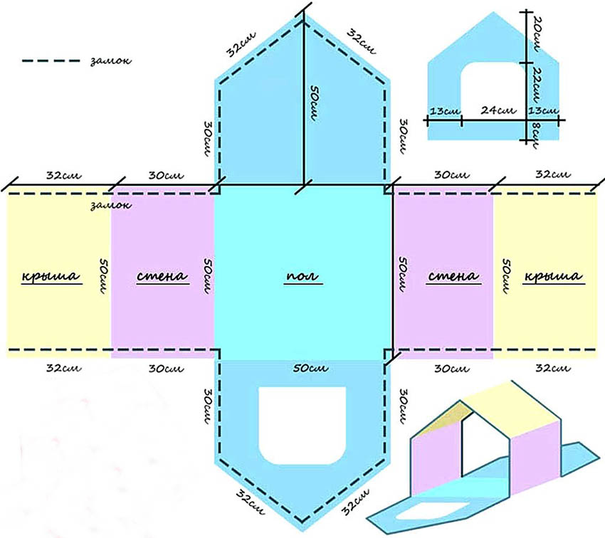 Everybody in the house can find old clothes that are no longer fit to wear, but nevertheless the hand does not rise to get rid of them. Therefore, a homemade dwelling for a domestic animal will be a great way to give new life to clothes. The dimensions of the shelter are selected based on the size of the animal; there cannot be any strict restrictions. The main thing is that the pet is not crowded inside, so that the structure does not occupy the lion's share of the room and does not interfere with free movement around it.