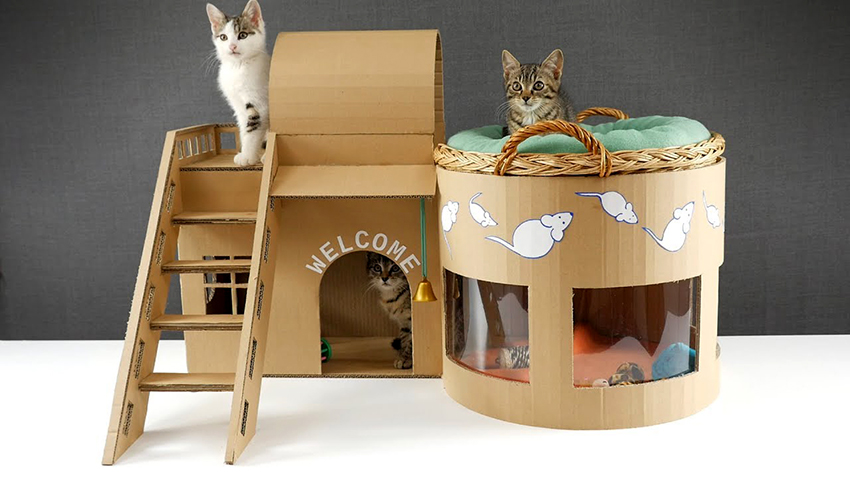 How to make a house for a kitten or an adult cat with a scratching post