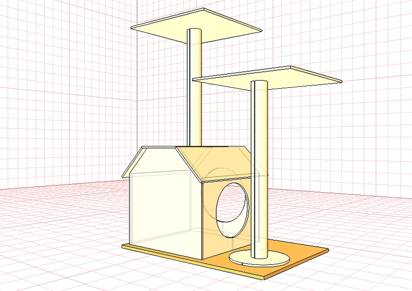 To make a house of plywood, consisting of 4 walls, a floor and a roof, you will need to prepare 6 square and rectangular parts in advance. The finished house most often becomes the highest point of the entire structure, so that the animal can lie down and watch everything that happens in the room. Another advantage of installing a high shelter is the fact that it is usually warmer under the ceiling than below, and there is no draft.